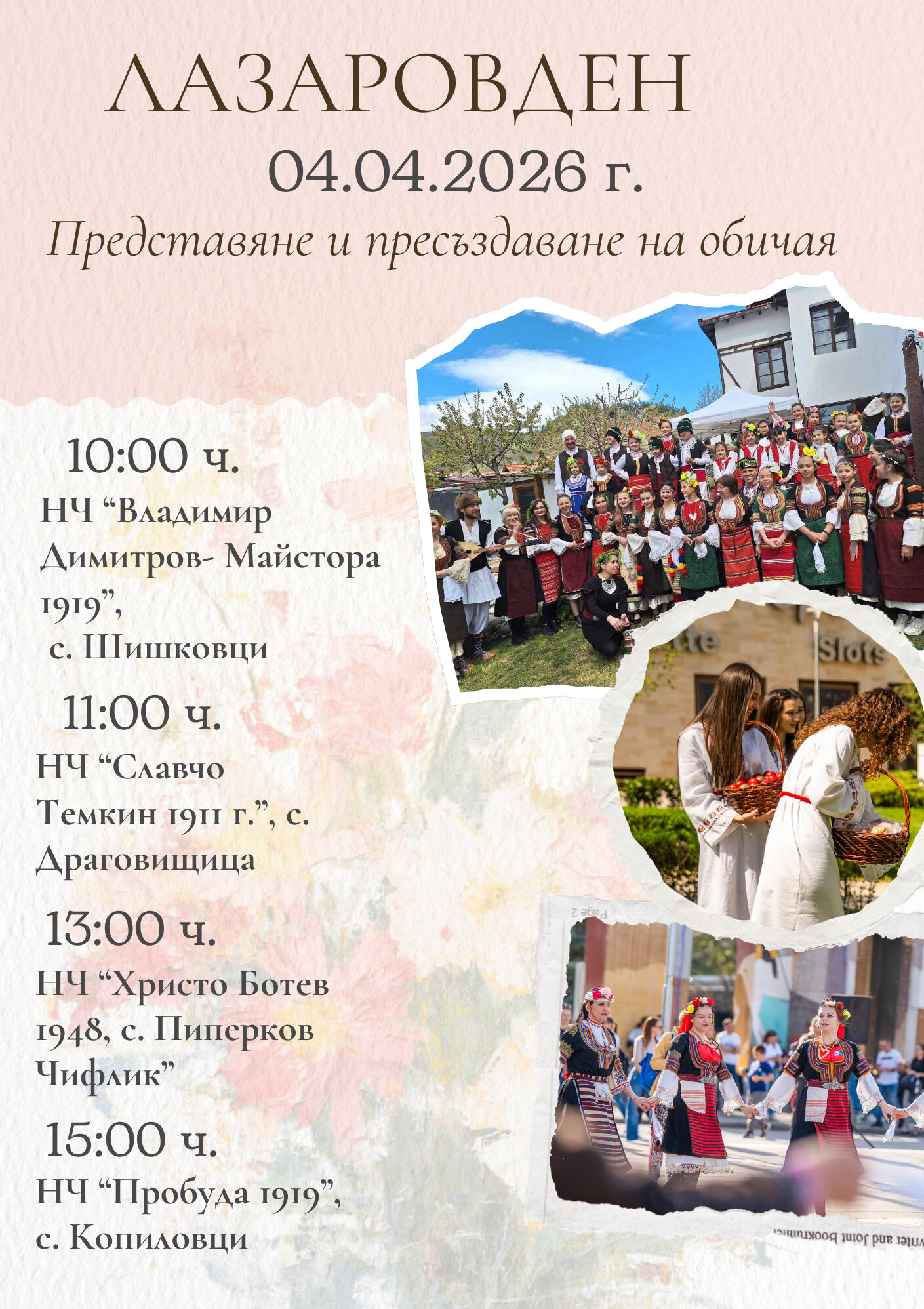 🎶 Фолклорни изпълнения, гост-артисти и самодейни състави ще превърнат празника в истински спектакъл.
